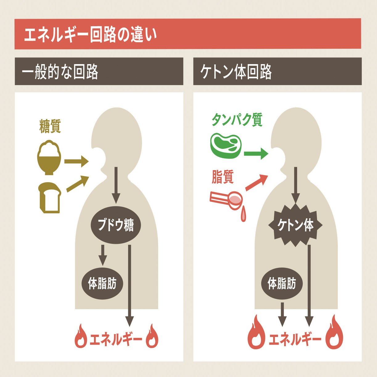 糖質制限やケトジェニックダイエット時は、「ケトン体」という物質が体内で作られます。このケトン体(β-ヒドロキシ酪酸やアセト酢酸)は脳にも入ることができ、糖質が不足した状態のときには、脳の“代替エネルギー源”として使われます。